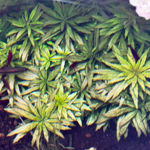 A miniature version of the popular stem plant Limnophila aromatica. It has compact growth and is great as a mid to back ground plant.