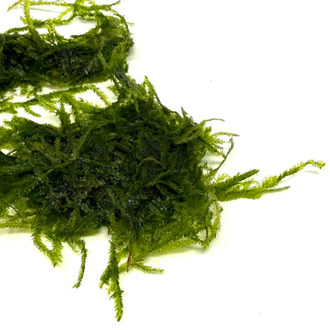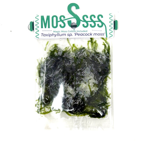 A species of aquatic moss.  Also a fantastic moss for use in terrariums and DOOA terra base.  As the name implies, when well grown, it resembles the fan tail of a peacock.  Also, it feels softer to the touch when compared to Christmas moss.  As with most mosses, it does better in water that is not too hot (78F or lower).